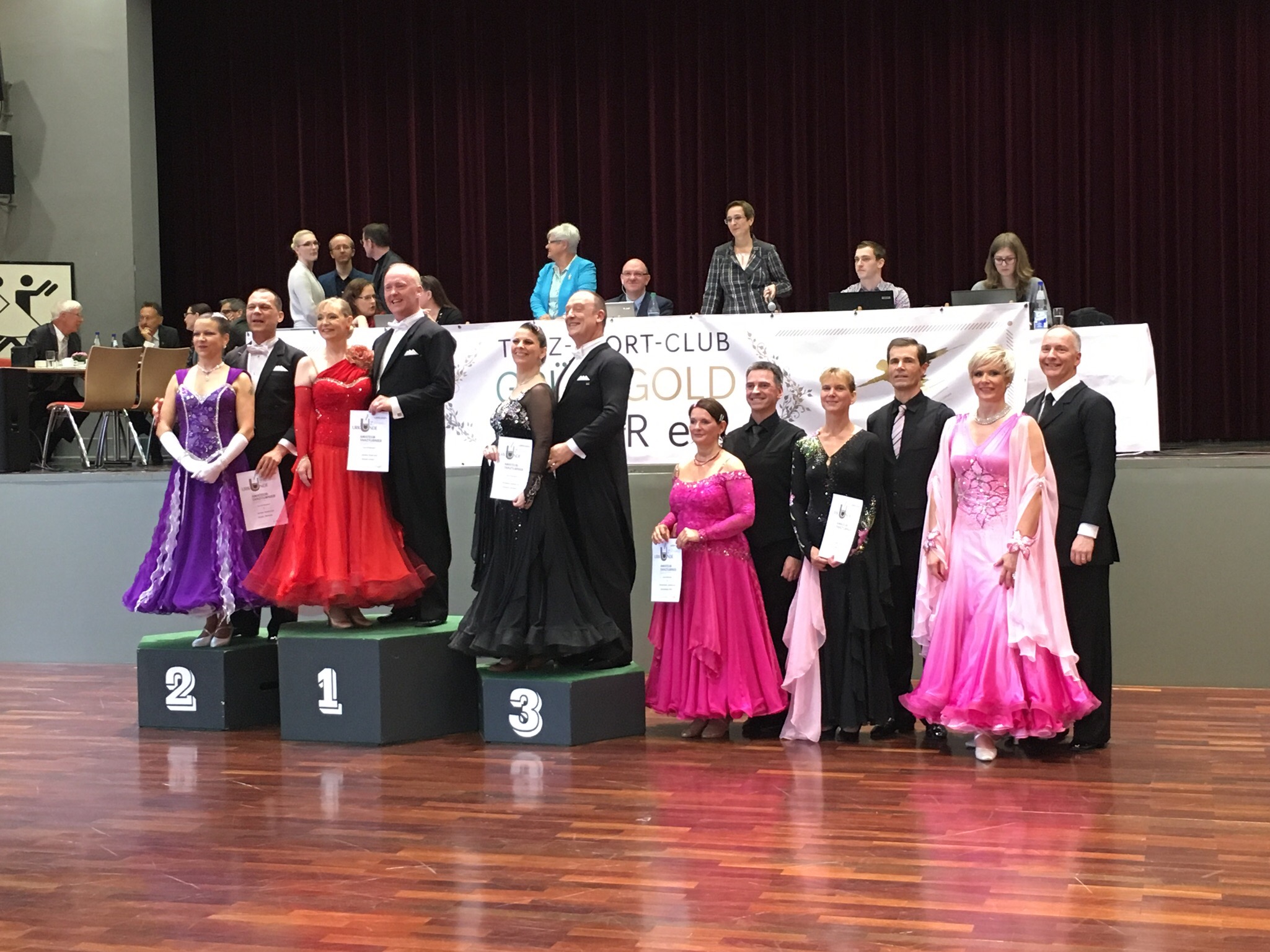 Angelika und Bernhard Ohlemüller sowie Regina und Peter Fischer starteten an beiden Tagen gemeinsam bei den Senioren III A-Standard und konnten sich mit guten Leistungen durchweg für die Finals qualifizieren. Das Ehepaar Fischer kam zweimal auf den 5. Platz, Ohlemüllers belegten am Samstag den 4. Platz und konnten sich am Sonntag den Sieg und damit in diesem Jahr bereits ihre 8. von 10 nötigen Platzierungen für die höchste Amateurklasse - die S-Klasse - sichern!.